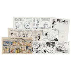 Five signed comic strips: an original one-panel Funky Winkerbean comic strip on a 19 x 6 sheet of artist’s translucent paper, signed in the right edge