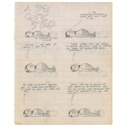 Early and original complete comic strip, signed “R. Crumb,” on both sides of a 6.75 x 8.5 off-white lightly lined sheet, titled “A Sad Comic Strip,” d