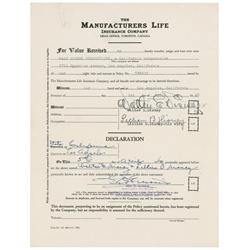 Notarized DS, signed “Walter E. Disney,” one page, 8.5 x 11, April 5, 1940. Disney transfers all rights, title, and interest of his insurance policy f