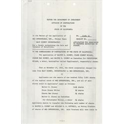 DS, signed “Walter E. Disney,” three pages, 8.5 x 13, May 21, 1956. Document entitled “Application for Permission to Transfer Securities in Escrow.” I