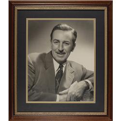 Oversized vintage matte-finish 13 x 16 photo of Disney casually leaning on a chair, signed and inscribed in fountain pen “To Lou—With my best, Walt.”