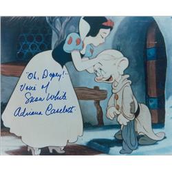 Two glossy 10 x 8 photos showing a scene from the animated Snow White, respectively signed in blue felt tip, “’Oh, Dopey!’ Voice of Snow White Adriana