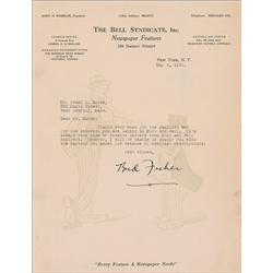 TLS, one page, 8.5 x 11, on whimsical Mutt and Jeff Bell Syndicate, Inc. letterhead, May 4, 1928. Letter to a Mutt and Jeff fan. In full: “Thanks very