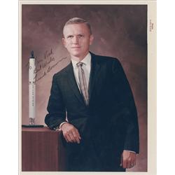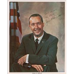 Color vintage 8 x 10 NASA photo of McDivitt in a jacket and tie, signed and inscribed in black felt tip “Best wishes to Vera, James McDivitt.” In fine