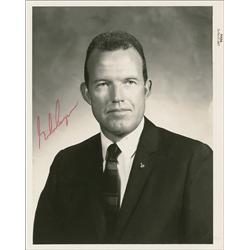 Vintage glossy 8 x 10 NASA photo, signed in red felt tip. In fine condition, with a few scattered light surface marks and creases. Accompanied by two