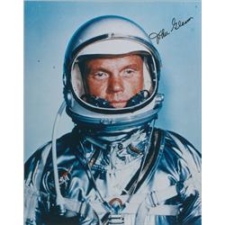 Color glossy 8 x 10 photo of Glenn in his Mercury space suit, signed in black felt tip. In very fine condition.