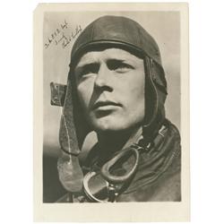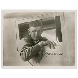 Vintage glossy 10 x 8 Underwood photo of Lindbergh looking out the window of the Spirit of St. Louis, signed in fountain pen, “C. A. Lindbergh.” Some
