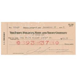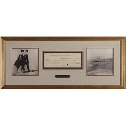 Bank check, 8.25 x 3.25, filled out and signed by Wright, “Wright Brothers,” payable to Dayton National Bank for $10.00, December 20, 1909. Double mat