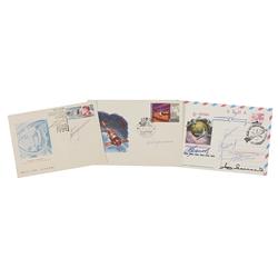 Three Russian commemorative covers, all three signed in ballpoint by Tereshkova, with one also signed in ink and felt tip by five other cosmonauts: Pe
