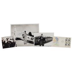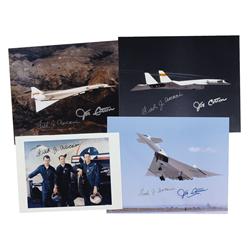Four items: three glossy or satin-finish photos, ranging in size from 5 x 4 to 10 x 8, individually signed in black felt tip by Chuck Yeager and Pete