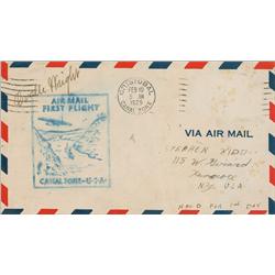 Airmail cover with a stamped cachet commemorating the first airmail flight to the Canal Zone, 6.5 x 3.5, 1929, signed in ink “Orville Wright.” The cov
