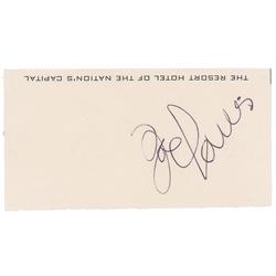 Ballpoint signature, “Joe Louis,” on an off-white 4 x 2 slip. In fine condition with printing at the top of the page that can be easily matted out if