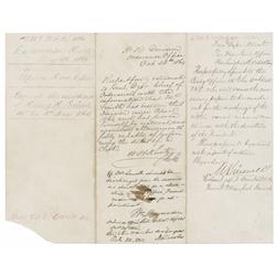 ALS, one page, 8 x 7.25, October 2, 1844. Letter to General Robert Armstrong in Nashville, Tennessee. In full: “I have occasion to refer to the Journa