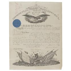 Partly-printed DS as president, signed “Abraham Lincoln,” one page, 14.25 x 17.25, March 4, 1864. Elaborately designed naval commission appointing “D.