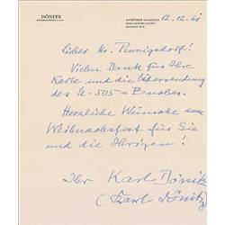 TLS in German, signed “Donitz,” one page, 8.25 x 11.75, January 19, 1960. In part (translated): “I will carry out your request. Right now, I am at a c
