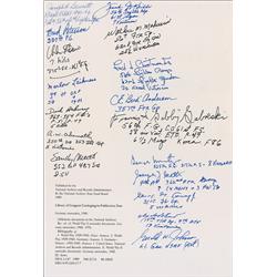 Souvenir pilot’s manual for the P-47 Thunderbolt, 1988. Softcover, 8.5 x 11, 50 pages, signed in blue or black ink on the inside front cover by nine a