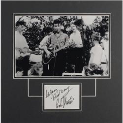 Felt tip signatures of Rod Davis, Colin Hanton, and Len Garry on an off-white card. Double matted with a satin-finish 14 x 11 photo of John Lennon and
