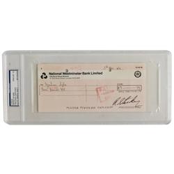 Business check, drawn on the Apple Records, Inc. account, 7.75 x 3.5, filled out in another hand and signed “R. Starkey” by Ringo Starr, payable to Gr