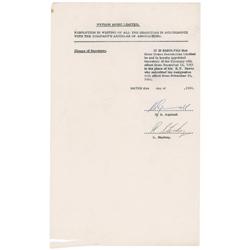 Carbon DS, signed in black ballpoint, “R. Starkey,” one page, 8 x 13, 1969. Python Music Limited resolution announcing a “Change of Secretary.” In ful