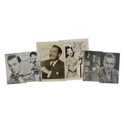 Six signed vintage photos, including four arcade cards, each signed in ink by the respective musician pictured. Signers are: Gene Krupa, Xavier Cugat,