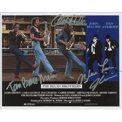Color glossy 10 x 8 photo of a poster for The Blues Brothers film, featuring the band’s horn section, signed in silver ink by Tom ‘Bones’ Malone, ‘Blu