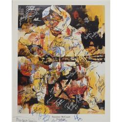 Color 27 x 34 print entitled ‘Blues Guitar,’ signed in ink and felt tip by 46 blues legends and greats. Signers are: James Cotton, Bobby Rush, Jimmy M