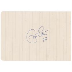 Ballpoint signature, “Eric Clapton 92,” on an off-white 5.75 x 4 lightly-lined slip. In fine condition.