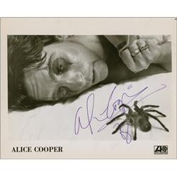Creepy glossy 10 x 8 Atlantic Records promotional photo of Cooper and a tarantula, signed in-person in purple felt tip, “Alice Cooper 78.” In fine con