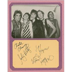 Very early in-person felt tip signatures of Steve Clark, Pete Wills, Joe Elliott, Rick Allen, and Rick Savage on a pink 5 x 3 card. Card is removably