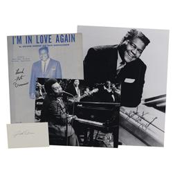 Four items: glossy 11 x 14 photo, signed in black felt tip; glossy 10 x 8 photo of Domino performing, signed in black felt tip; ballpoint signature on