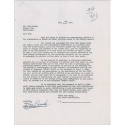DS, one onionskin page, 8.5 x 11, July 14, 1939. Agreement between Hal Roach Studios and Stan Laurel regarding the distribution of Laurel and Hardy pi
