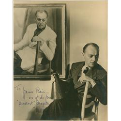 Vintage matte-finish 8 x 10 photo, signed and inscribed in fountain pen “To Frances, Sincere wishes for your future happiness, Jean Hersholt 1927.” Ph