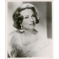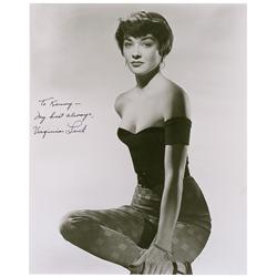Vintage glossy 7.5 x 9.5 publicity photo of Hyer in a sultry pose, signed in ink “Martha Hyer.” In very good condition, with some light creasing and s