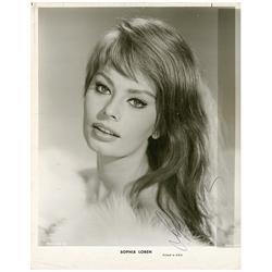 Vintage sexy satin-finish 8 x 10 head-and-shoulders photo, signed in fountain pen “Sophia Loren.” In very good condition, with mild creasing, surface