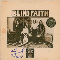 Two signed albums, Blind Faith and John Barleycorn Must Die, each signed on the front cover in blue felt tip. The records are not included. In very go