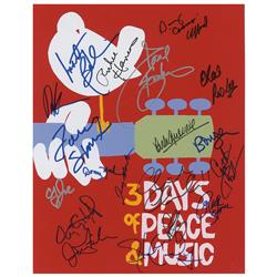 Color satin-finish 11 x 14 photo of a Woodstock poster, signed in ink and felt tip by 19 performers. Signers are: Arlo Guthrie, Richie Havens, Country
