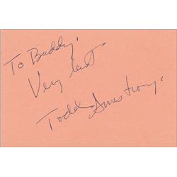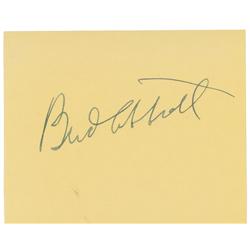 Vintage fountain pen signature, “Bud Abbott,” on a yellow 4.25 x 3.25 slip. In fine condition.