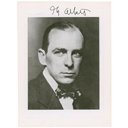 Vintage matte-finish 7.25 x 9.25 photo of the well-dressed star, signed in fountain pen “George Arliss” with an added sentiment. In very good conditio