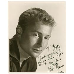 Handsome vintage glossy 10.25 x 13.5 20th Century Fox head-and-shoulders publicity photo, credited to Gene Kornman, signed and inscribed in green foun