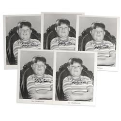 Five identical 8 x 10 cardstock photos of Weatherwax in character, each signed in black felt tip “Ken Weatherwax, Pugsley Addams.” In overall fine con