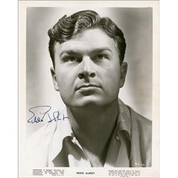 Vintage glossy 8 x 10 RKO publicity photo, signed in fountain pen “Eddie Albert.” In fine condition, with light edge wear and a tiny bottom right corn