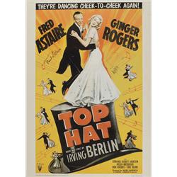 Color 20 x 28 poster of a film poster for Top Hat, signed in black felt tip by Fred Astaire and Ginger Rogers. Rolled and in very good condition, with