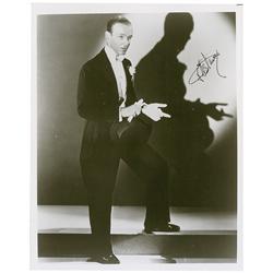 Glossy 8.25 x 10 photo of Astaire in tails holding his top hat, signed in black ink “Fred Astaire.” In fine condition.