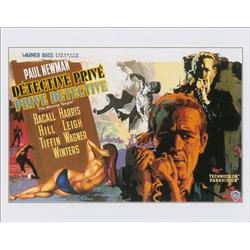 Color satin-finish 14 x 11 photo of a foreign film poster for Harper (Private Detective), signed in purple ink. In very fine condition.
