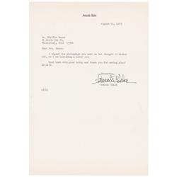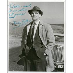 Welsh actor and film producer (1928–1976). Glossy 8 x 10 photo of a well-dressed Baker standing outdoors, signed and inscribed in ink “To Eddie—thanks