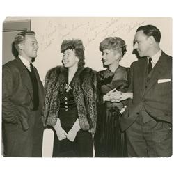 Vintage matte-finish 11.5 x 9.5 photo of Ball, writer Bob Considine, and two others, signed and inscribed in fountain pen “To Mr. and Mrs. ‘Bob’ Consi
