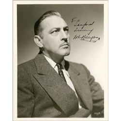 Vintage glossy 8 x 10 publicity photo, signed and inscribed in fountain pen “To Lanford, Sincerely, John Barrymore.” In fine condition, with light cre