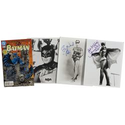 Four items: three glossy 8 x 10 photos of Batman, Robin, and Batgirl, signed in felt tip by Adam West, Burt Ward, and Yvonne Craig respectively, with