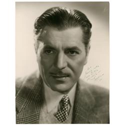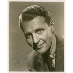 Vintage matte-finish 8 x 10 head-and-shoulders photo, signed and inscribed in fountain pen “To Mildred, With Very Best Wishes, Ralph Bellamy.” In fine