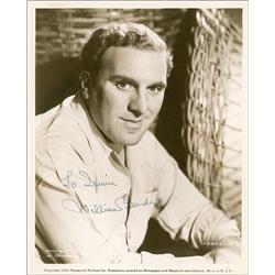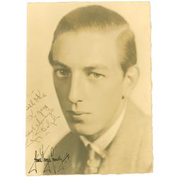 Singer, composer, and actor, both on Broadway and in film (1897–1975). Vintage matte-finish 8 x 10 publicity portrait, signed and inscribed in fountai
